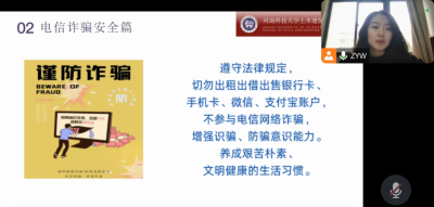 张雨薇老师向大家传达了电子游艺 关于寒假的通知以及假期的安全注意事项,从出行安全、消防安全、防范电信诈骗安全、燃放烟花爆竹安全等方面具体进行强调,提醒同学们时刻将人身安全放在第一位,持续警惕电信诈骗,未经核实不向陌生平台、陌生人转账,对于涉及转账汇款之类的QQ、微信消息等一定要直接打电话确认。