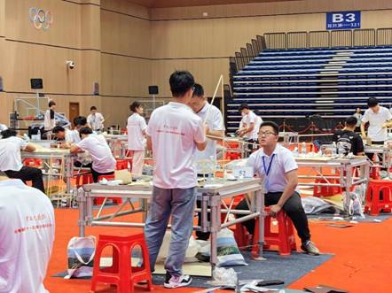 随后,队员们进入场地,开始了紧锣密鼓的模型制作环节。经过一个多月的赛前培训,每位参赛队员都对所做模型烂熟于心,从裁条到拼接,日夜打磨的艺术品被队员们一点点搭建起来。精细的制作过程驱散了紧张与焦虑,队员们全身心投入于模型制作。