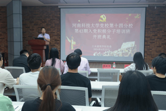 为深入学习贯彻习近平新时代中国特色社会主义思想,不断加强入党积极分子的教育培训,提高入党积极分子的政治理论水平和基本素养,2024年4月25日,电子游艺 党校第十四分校第43期入党积极分子培训班开班仪式在电子游艺 报告厅举行。电子游艺 党委书记段国强、副书记张献文,全体本科生支部书记和全体参训学员参加会议,会议由张蓝方老师主持。