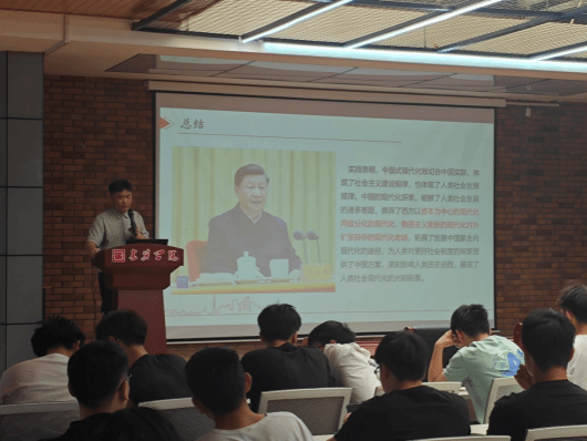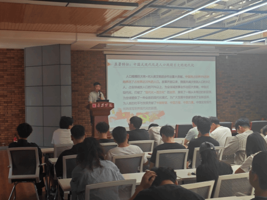汇报开始,宣讲团成员孙笑童首先深入探讨了中国共产党和中国特色社会主义的优越性,解释了为何中国能在短短几十年内走完西方资本主义国家需要二三百年才能走完的路程。接着,他详细阐述了中国式现代化的五个重要特征,强调了人口规模巨大的现代化是中国式现代化的显著特征,指出中国的人口规模在世界上独一无二,这决定了中国必须走自己的现代化道路,并对人类文明进步作出重大贡献。