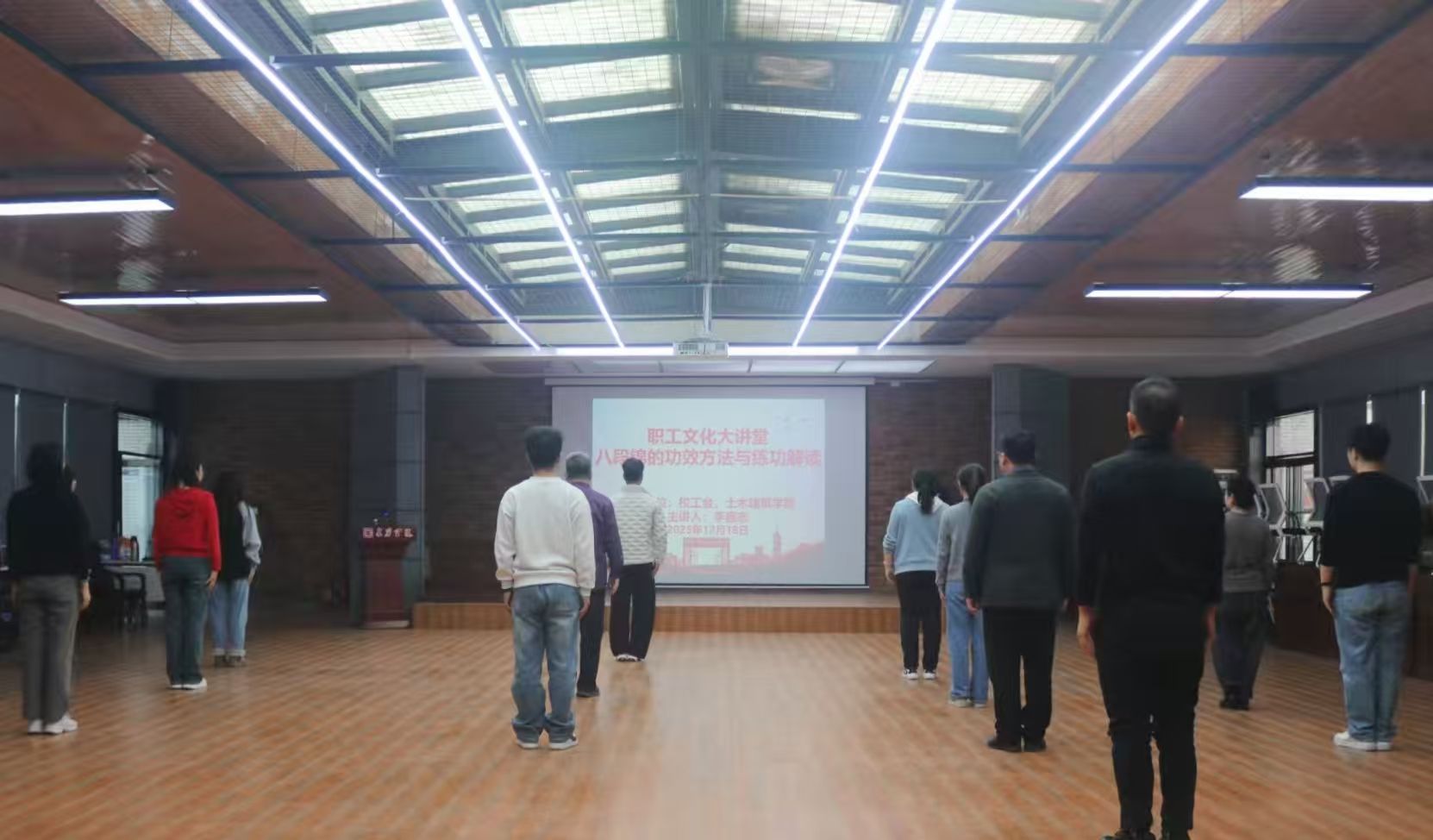 通过本次职工文化大讲堂,教职工们对八段锦有了深刻认识,掌握了练功技巧,能在工作之余通过练习舒展筋骨,增强体质,缓解压力。未来,电子游艺 会持续深化以人为本的教育理念,通过不断丰富活动形式达到增强教职工体质的效果,为电子游艺 高质量发展赋能。
